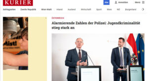 في تقرير رسمي كشف عنه وزير الداخلية النمساوي غيرهارد كارنر (من حزب الشعب ÖVP) يوم الإثنين في فيينا، سُجّلت زيادة ضخمة في معدلات الجريمة بين الأطفال والمراهقين، ما وصفه كارنر بـ”الارتفاع الهائل في الجريمة بين فئة الشباب”. وأظهرت إحصائيات الشرطة للعام 2024 أن عدد البلاغات التي تورّط فيها قُصّر تتراوح أعمارهم بين 10 و14 عامًا قد تضاعف في السنوات الأخيرة، …
