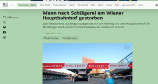 في حادثة مأساوية هزّت مدينة فيينا، تحوّل نزاع بسيط بين رجلين بلا مأوى إلى مأساة دامية، انتهت بوفاة أحدهما في وقت لاحق من الحادث. فقد شهدت محطة القطار الرئيسية في حي “فافوريتن” مساء يوم الاثنين الماضي شجارًا عنيفًا بين رجلين يحملان الجنسية الهنغارية، ما أسفر عن إصابة أحدهما بجروح قاتلة في الرأس. المتهم البالغ من العمر 54 عامًا، والذي كان …