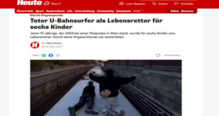 في حادث مأساوي صدم المدينة، توفي الشاب “فلادو ك.”، البالغ من العمر 17 عامًا، في حادث مروع أثناء محاولته المغامرة على سطح قطار الأنفاق “U4” في فيينا. كان فلادو وصديقه، اللذان كانا يحاولان تسجيل لحظات من المغامرة لنشرها عبر تطبيق تيك توك، يركبان القطار بطريقة خطرة للغاية عندما اصطدموا بجسر للمشاة، مما أسفر عن وفاة فلادو في الحال، بينما توفي …