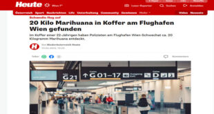 في عملية أمنية بمطار فيينا، تمكنت الشرطة من ضبط 20 كيلوغرامًا من القنب داخل حقيبة سفر، كانت بحوزة شابة سويدية تبلغ من العمر 22 عامًا، أثناء محاولتها الصعود إلى رحلة متجهة إلى فرانكفورت يوم الثلاثاء. اكتشاف الحقيبة المشبوهة بحسب وكالة الأنباء النمساوية (APA)، تم تسجيل الحقيبة في بانكوك، وكان من المقرر أن تشحن إلى فرانكفورت. إلا أن التفتيش الأمني في …