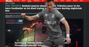 أعلن نادي إف كيه سكوبي المقدوني الشمالي لكرة القدم عن وفاة لاعبه أندريه لازاروف، إثر تعرضه لتسمم دخاني أثناء محاولته إنقاذ ضحايا آخرين في حريق مدمر أودى بحياة 59 شخصًا داخل ملهى ليلي. وأكد النادي، في بيان صدر مساء الأحد، أن لازاروف كان من بين الضحايا، مشيرًا إلى أن اللاعب البالغ من العمر 25 عامًا شارك سابقًا في مباراة دولية …