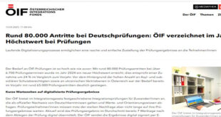 شهدت النمسا في عام 2024 ارتفاعًا قياسيًا في أعداد المشاركين في اختبارات اللغة الألمانية التي تنظمها دائرة الاندماج النمساوية (ÖIF)، حيث تجاوز عدد المتقدمين 80 ألف شخص، مسجلًا زيادة بنسبة 24% مقارنة بالعام الماضي. وترافق هذا الارتفاع مع تزايد أعداد اللاجئين والمقيمين الحاصلين على الحماية الفرعية، بالإضافة إلى اللاجئين الأوكرانيين الذين يسعون إلى إثبات كفاءتهم اللغوية لتعزيز فرصهم في الاندماج …