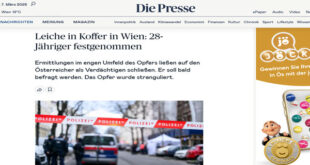 في يوم الجمعة الماضي، عثر أحد المارة على جثة رجل داخل حقيبة سفر في شارع Quellenstraße بمنطقة Favoriten. أثار هذا الاكتشاف موجة من التساؤلات، خاصة بعد أن أكدت التحقيقات الأولية أن الجريمة لم تكن نتيجة لنشاطات عصابات كما تكهنت بعض وسائل الإعلام، بل كانت على خلفية خلاف مالي. تبين من التحقيقات أن الضحية هو كريستيان ش.، رجل أعمال نمساوي يبلغ …