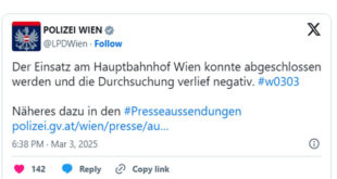 اقرأ المزيد »فيينا – بسبب تهديد غامض.. إخلاء محطة القطارات الرئيسية Hauptbahnhof
