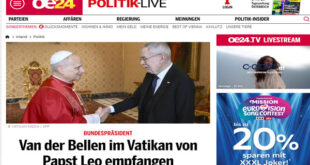 وصل الرئيس النمساوي ألكسندر فان دير بيلين إلى الفاتيكان، حيث استقبله البابا ليو الرابع عشر في لقاء رسمي تناول عدداً من القضايا الدولية، وعلى رأسها التطورات المتسارعة