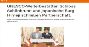 وقّع اثنان من أهم المواقع الثقافية العالمية، المُدرجة على قائمة التراث العالمي لمنظمة اليونسكو، في النمسا واليابان، اتفاقية شراكة للحفاظ على الكنوز الثقافية وتعزيز تبادل المعرفة والتعليم الثقافي وتقوية العلاقات وتعزيز التعاون الدولي. وقّع الاتفاقية في العاصمة النمساوية فيينا، قصر «شونبرون» في النمسا وقلعة «هيميجي» في اليابان. وأكد الرئيس التنفيذي لمجموعة قصر «شونبرون»، كلاوس بانهولتسر، أهمية الاتفاقية التي تلزم المسؤولين …