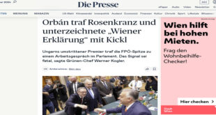 أثار توقبع “إعلان فيينا” بين رئيس الوزراء المجرى فيكتور أوربان وزعيم حزب الحرية النمساوي اليمين هربرت كيكل “النمسا” في فيينا يوم أمس الخميس ضجة واسعة، إذ تم انتقاد توقيع كيكل باسم النمسا واعتبر ذلك بمثابة “انتحال للصفة السياسية”. حيث أرادت المجر والنمسا التأكيد على التزامهما بعلاقات الصداقة والجوار بينهما بالإضافة إلى علاقاتهما التاريخية والثقافية الراسخة. وأعرب الجانبان عن إرادتهما المشتركة …