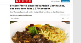 أعلن اليوم الاثنين عن بدء إجراءات الإفلاس بحق شركة MW Gastro GmbH في المحكمة الإقليمية بمدينة لينز، ما يضع نهاية لمطعم Zum schiefen Apfelbaum الشهير