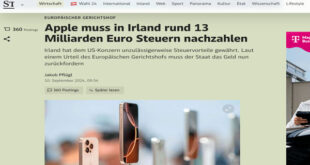 أصدرت محكمة العدل الأوروبية، اليوم الثلاثاء، حكمًا يلزم شركة آبل بدفع 13 مليار يورو كضرائب مستحقة لأيرلندا، وذلك في إطار النزاع القائم مع المفوضية الأوروبية بشأن مدفوعات ضريبية غير قانونية. وجاء الحكم ليؤكد قرار المفوضية الأوروبية الذي اعتبر أن أيرلندا منحت شركة آبل معاملة ضريبية تفضيلية بنسبة 0.005%، وهو ما اعتبرته المفوضية انتهاكًا لقوانين المساعدات الحكومية في الاتحاد الأوروبي. آبل …