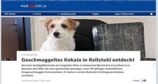 ذكرت الشرطة النمساوية اليوم السبت الموافق 7 من سبتمبر 2024 أن كلبين مدربين على كشف المخدرات في مطار فيينا، اكتشفا 14 كيلوجراما من الكوكايين في كرسي متحرك لراكب فنزويلي/39 عاما وذكرت شرطة ولاية النمسا السفلى في بيان أن الرجل كان مسافرا جوا من البرازيل إلى فيينا وكان يستخدم كرسيا متحركا كهربائيا للتنقل في المطار ويحمل وثائق بشأن علاج طبي زعم …