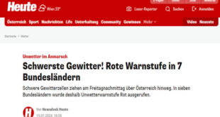 ضربت عواصف رعدية عنيفة أجزاء كبيرة من ولايتي “سالزبورج” و”النمسا العليا” ، وتسببت في حدوث خسائر مادية وإصابة عدة أشخاص . وأخذت العواصف شكل الأعاصير الخطيرة في العديد من الأماكن، وبلغت سرعة الرياح نحو 100 كم/ساعة في مدينة “لينز” عاصمة الولاية.وألغت قوات الدفاع المدني “مهرجان فرسان العصور الوسطى” في مركز العاصمة بعد هبوب العاصفة وهطول الأمطار الغزيرة . وقال بيان …