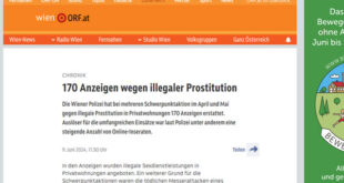 شنت الشرطة النمساوية حملة واسعة ضد الدعارة الغير القانونية في الشقق الخاصة، مما أسفر عن تقديم 170 بلاغًا خلال شهري أبريل ومايو. وقال المتحدث باسم شرطة العاصمة فيينا، كان من بين دوافع هذه العمليات هو الارتفاع في الإعلانات عبر الإنترنت التي تعرض خدمات جنسية غير قانونية في المنازل الخاصة. جاءت هذه الحملة بعد الهجوم القاتل التي نفذها رجل بالسلاح الأبيض …