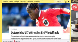 بلغ منتخب النمسا ربع نهائي بطولة أوروبا للناشئين تحت سبعة عشر عاماً متصدراً للمجموعة الثانية بفوزه العريض برباعية على نظيره الدنماركي الذي رافقه إلى دور الثمانية. الهدف الأوّل حمل توقيع فيليب مويزي عند الدقيقة الحادية عشرة، وعاد اللاعب ذاته ليضيف الهدف الثاني في الدقيقة التاسعة والعشرين. أمّا ثالث ُ أهداف ِ منتخب ِ النمسا فجاء بتوقيع أديجي نو غـوري عند …