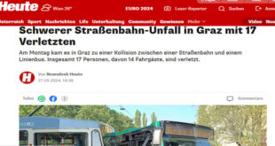 وقع حادث تصادم بين حافلة نقل عامة وترام، صباح اليوم الإثنين، في مدينة غراتس بولاية شتايرمارك، مما أدى إلى إصابة عدد من الركاب. وتشير التقارير الأولية إلى أن الحادث وقع حوالي الساعة السابعة صباحًا، عند تقاطع شارع تيودور كورنر وشارع غوتل، وأسفر عن إصابة أربعة ركاب على الأقل. ووفقًا لشركة “هولدينج غراتس” للنقل العام، يعتقد أن الحافلة انعطفت إلى اليمين …