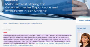 أطلقت وزارة المالية النمساوية صندوقًا ائتمانيًا خاصًا بقيمة 500 مليون يورو في بنك المراقبة النمساوي لدعم الشركات الوطنية التي تصدر إلى أوكرانيا خلال السنوات الخمس المقبلة. ونقلت دورية الأعمال الأوكرانية الإخبارية عن وزارة المالية النمساوية ، في بيان ، إن العمليات العسكرية الروسية على أوكرانيا مستمرة منذ أكثر من عامين، مما يجعل أي عمل مع الشركات الأوكرانية محفوفًا بالمخاطر للغاية …