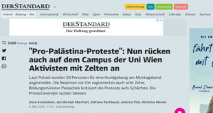 بعد أسابيع من الاحتجاجات الطلابية في عدة جامعات بالولايات المتحدة رفضاً لحرب الإبادة الإسرائيلية على قطاع غزة، انطلقت شرارة الحراك في احد أعرق الجامعات الأوروبية بحامعة فيينا . فقد افترش اليوم طلاب جامعة فيينا الساحات في الحرم الجامعي، منددين بدعم “إبادة المدنيين في غزة” وفق وصفهم. كما نصبوا الخيام داخل وخارج محيط الجامعة ، وعلى غرار الاحتجاجات الطلابية التي تجتاح …