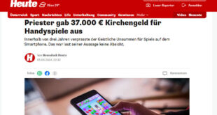 اقرأ المزيد »كاهن ينفق 37 ألف يورو من أموال الكنيسة على ألعاب الهاتف
