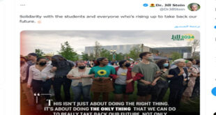 وثّق مقطع فيديو، لحظة اعتقال الشرطة الأمريكية مرشحة الرئاسة جيل ستاين في احتجاجات مؤيدة للفلسطينيين في جامعة واشنطن بمدينة سانت لويس. وقال المتحدث باسم حملة ستاين لشبكة “سي إن إن”، إنه تم توقيف المرشحة الرئاسية لحزب الخضر جيل ستاين، خلال مظاهرة مؤيدة للفلسطينيين في جامعة واشنطن. https://twitter.com/i/status/1784411081340809348 وأضاف المتحدث في تصريحاته: “لسنا على علم بأي اتهامات في الوقت الحالي”. وكانت …