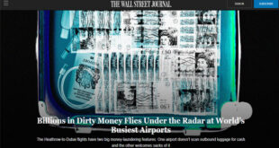 سلط تقرير حديث لصحيفة “وول ستريت جورنال The Wall Street Journal” الضوء على تحول الإمارات إلى مقصد الفاسدين وكبار اللصوص الأول لغسيل الأموال، وذكر أن رحلات هيثرو إلى دبي تحتوي على ميزتين كبيرتين لغسل الأموال: لا يقوم أحد في المطارات بتفتيش الأمتعة الصادرة بحثا عن النقود، والثانية يرحب بهذه الأموال داخل الدولة دون السؤال عن مصدرها. وتابع التقرير ضاربا أحد …