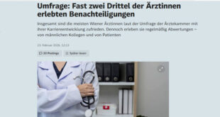 كشفت دراسة حديثة أجرتها Wiener Ärztekammer أن معظم الطبيبات في فيينا راضيات عن مسارهن المهني، إلا أن الغالبية العظمى يواجهن تمييزًا وتحقيرًا منتظمً