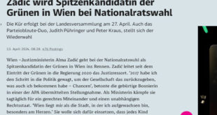 أعلن حزب الخضر، بقيادة نائب المستشار النمساوى فيرنر كوغلر والشريك في الائتلاف الحاكم في النمسا، أن وزيرة العدل، ألما زادتش، ستترأس قائمة ترشيحات الحزب في الانتخابات البرلمانية المقبلة التي ستشهدها البلاد في الخريف. وتترأس زادتش وزارة العدل منذ دخول حزب الخضر في الحكومة في العام 2020، قالت الوزيرة في بيان لها لوكالة الأنباء النمساوية أنها “تريد العمل لضمان حصول كل …