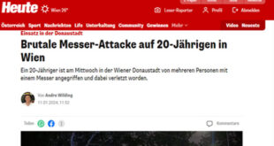 تعرض خمسة أطفال قصر لهجوم وحشي بالسكين على يد قاصرين آخرين، بالحى السابع عشر – فيينا، مساء يوم أمس الجمعة الموافق 12 من أبريل 2024. ووفقًا للشرطة، هدد قاصران سوريان، يبلغان من العمر 12 و14 عامًا، خمسة أطفال قصر تتراوح أعمارهم بين 10 و15 عامًا بسكين “الفراشة”، في منطقة محطة للحافلات بالحى ، حوالي الساعة 9:15 مساءً. ثم قام المهاجمان …