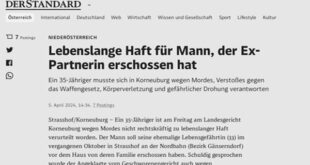 حكمت محكمة كورنيوبورج الإقليمية، يوم الجمعة، بالسجن مدى الحياة على رجل يبلغ من العمر 35 عامًا، لقتله شريكته السابقة، في شارع هوف ان دير نوردبان في فيينا، في أكتوبر الماضي. ووجدت المحكمة أن الرجل مذنبًا بتهم القتل والإيذاء الجسدي والتهديدات الخطيرة وانتهاك قانون الأسلحة. ووصف القاضي الجريمة بأنها “أشبه بالإعدام”، نقلًا عن وكالة الأنباء النمساوية (APA). ووفقًا للائحة الاتهام، وقعت …