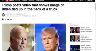 تعرّض الرئيس الأمريكي السابق دونالد ترامب لانتقادات واتهامات بالتحريض على العنف، بعد أن شارك الجمعة، 29 مارس/آذار 2024، مقطع فيديو على منصة “تروث سوشال”، يظهر خلفه الرئيس جو بايدن مقيداً وملقى في مؤخرة شاحنة. يتضمن الفيديو الذي نُشر الجمعة لقطات لشاحنتين صغيرتين تحملان لافتات مؤيدة لترامب، تسيران على طريق سريع، وعلى الباب الخلفي للشاحنة الثانية عُلقت صورة لبايدن مكبل اليدين …