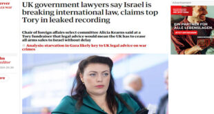 تلقت الحكومة البريطانية مشورة من محاميها تفيد بأنَّ إسرائيل انتهكت القانون الإنساني الدولي في غزة لكنها لم تفصح عنها، وفق تسجيل مسرب لسياسية بريطانية، بحسب صحيفة “الغارديان”. وتتعارض هذه التعليقات، التي أدلت بها رئيسة المحافظين للجنة المختارة للشؤون الخارجية بمجلس العموم، أليسيا كيرنز، في حفل لجمع التبرعات لحزب المحافظين في 13 مارس/آذار، مع النفي المتكرر من الحكومة البريطانية والتهرب من …