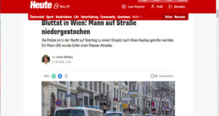 وقع هجوم طعن مروع مساء أمس السبت، في حي نويباو بفيينا، حيث تعرض رجل يبلغ من العمر 49 عامًا لإصابات خطيرة جراء طعنه في الشارع. وبحسب بيان صادر عن الشرطة، تم العثور على الضحية، وهو رجل بلا مأوى، مصابًا بطعنات وإصابات خطيرة في الشارع، وتم ضبط سكينين بالقرب من مكان الحادث ويشتبه في أنهما سلاح الجريمة. وبعد التحقيق، تم القبض …