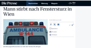 لقي رجل يبلغ من العمر 39 عامًا مصرعه، صباح يوم الأربعاء، إثر سقوطه من شرفة منزله في ظروف غامضة، في حي رودولفسهايم بولاية فيينا العاصمة. وقالت الشرطة في بيان صحفي إن ظروف السقوط لا تزال غير واضحة، وإن بعض الإصابات تشير إلى احتمال وجود شبهة جنائية. وأضاف البيان أن خدمة الإنقاذ في فيينا وصلت إلى مكان الحادث، لكنها لم تتمكن …