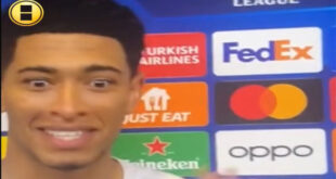 ظهر الإنجليزي جود بيلينغهام لاعب خط وسط ريال مدريد، وقد انتابته حالة من الصدمة، بعد عرض غير متوقع قدمته له مراسلة تلفزيونية. وكان بيلينغهام يجري مقابلة تلفزيونية، وفي نهايتها وجه الشكر للمذيعة على هذه الاستضافة، وكان يقول لها: “شكرًا جزيلًا.. تصبحين على خير”. https://youtu.be/Zi2PadBu3Pw وردّت المراسلة، وبشكل صادم قائلة له: “هل ترغب بالقدوم معي إلى المنزل؟”. العرض فاجئ لاعب ريال …