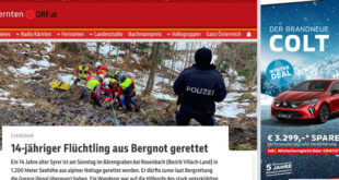 تم العثور على شاب سوري، يبلغ من العمر 14 عامًا، في حالة يرثى لها، يوم الأحد، في منطقة روزنباخ بولاية كارينثيا، وذلك بعد محاولته عبور الحدود النمساوية بشكل غير قانوني. ووفقًا لفريق البحث والإنقاذ، عثر متنزه (61 عامًا) على الشاب في الغابة، بالقرب من الحدود السلوفينية، بعد ظهر يوم الأحد، وكان يعاني من انخفاض حاد في حرارة الجسم، وبالكاد يستجيب، …