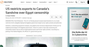 أدرجت وزارة التجارة الأمريكية شركة معدات الشبكات الكندية Sandvine Inc على القائمة السوداء للتصدير يوم الإثنين 26 فبراير/شباط 2024، وذلك بسبب مزاعم أنها زودت مصر بتقنيات رقابة وتجسس جرى استخدامها في الرقابة واستهداف جهات فاعلة بمجال حقوق الإنسان داخل مصر. حسب تقرير لموقع Middle East Eye البريطاني، الأربعاء 28 فبراير/شباط 2024، فقد أفاد القرار الصادر عن مكتب الصناعة والأمن في …