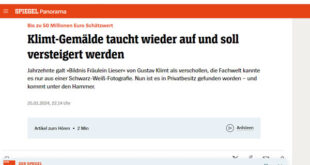 بقيت مالكة اللوحة عام 1925 هنرييت ليسر في فيينا على رغم النظام الدكتاتوريّة النازيّة الّذي كان سائدًا آنذاك، وتمّ ترحيلها سنة 1942 ثمّ اغتيلت في العام التالي بعد فقدان أثرها لعشرات السنين، ظهرت لوحة غير واضحة المصدر، للرسّام النمساويّ الشهير غوستاف كليمت، ضمن مزاد سيطرح بتاريخ 24 نيسان/ أبريل المقبل. وكان العمل الّذي حفظ بعناية، ظهر للمرّة الأخيرة خلال معرض …
