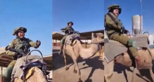 أصبحت سرقات جيش الاحتلال الإسرائيلي لأملاك الفلسطينيين في غزة بعد تهجيرهم من منازلهم، مشهداً شبه يومي وعملاً ممنهجاً وليس حالات فردية. وتداول مستخدمو منصات التواصل مقطع فيديو لجندي إسرائيلي يسرق جمل مواطن فلسطيني بقطاع غزة، ويلتقط الصور وهو يركبه متفاخرًا وفرحا بفعلته. متفاخرًا وفرحا بفعلته.. جندي إسرائيلي يسرق جمل احد المواطنين بقطاع غزة pic.twitter.com/1zCMxQz1K7 — المجلس (@almajlisom) December 12, 2023 …