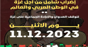 مع الحرب الإسرائيلية الوحشية ضد قطاع غزة أطلق نشطاء منصات التواصل دعوات لإضراب شامل حول العالم الاثنين 11 كانون الأول/ديسمبر 2023 تضامناً مع أبناء غزة ولوقف الحرب الإسرائيلية الوحشية منذ 7 تشرين الأول/أكتوبر 2023. وذكر ناشطون أن الهدف من حملة strikeforgaza أو “إضراب من أجل غزة” الضغط على الأنظمة والحكومات حول العالم وإجبارها للتحرك جدياً لوقف المجازر الإسرائيلية المتواصلة والتي …