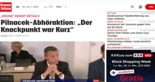 نشرت صحيفة كورونا النمساوية اليومية واسعة الأنتشار اليوم الأحد الموافق 27 من نوفمبر 2023 تسجيل مسرب لأحد رجال القضاء ” كريستيان بيلناشيك ” الذى هز بدوره جمهورية النمسا ، قال فيه : أنه تعرض لضغوط من قبل نائب المستشار سيباستيان كورتس لسنوات لمنع تفتيش المنازل والتأثير على الإجراءات القضائية لصالحهم ، تم إرسال التسجيل المسرب إلى صحيفة “كرونا” بعد فترة …