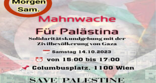 اقرأ المزيد »غداّ السبت مظاهرة في فيينا دعمًا لغزة وتنديدًا بالمجازر والعدوان الإسرائيلي على القطاع