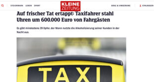 تمكنت الشرطة النمساوية في العاصمة النمساوية فيينا ، من ضبط سائق سيارة أجرة تركى الأصل ، يبلغ من العمر 33 عام بتهمة الاعتداء على ركاب سيارته لأشخاص كانوا فى حالة سكر شديدة وسرقة متعلقاتهم الشخصية بأسلوب المغافلة وحسبما نشرت الصحيفة النمساوية Krone، قدرت الشرطة المسروقات بمبلغ قدره 600 ألف يورو ، وأن السائق المشتبه به نفذ ما يقارب من 39 …