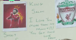 شهدت مباراة ليفربول أمام برينتفورد في الدوري الإنجليزي والتي فاز فيها الريدز بهدف دون مقابل في المباراة التي جمعت الفريقان لحساب الجولة 35 من البطولة، بهدف من توقيع النجم المصري محمد صلاح، رسالة غريبة من أحد الجماهير الحاضرة في ملعب المباراة. وأظهرت الكاميرات رسالة من مشجع صغير لفريق ليفربول وجهها للنجم المصري محمد صلاح، على لافته وسط الجمهور الكبير قال …