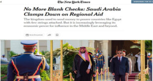 نشرت صحيفة “نيويورك تايمز” الأمريكية تقريراً كشفت فيه عن تحوّل جذريّ في طريقة المساعدات السعودية المقدّمة لمصر، تمثّل في إرسال الرياض رسالةً للقاهرة مفادها: “لا مزيدَ من الشيكات على بياض”. وقالت صحيفة “نيويورك تايمز“، إنّ ولي العهد السعودي محمد بن سلمان يعلّق شروطاً متزايدة لمثل هذه المساعدات، ويصرّ على إصلاحات اقتصادية. وفي هذا السياق، قالت كارين يونج، باحثة أولى في مركز سياسة …