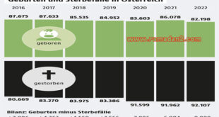 اقرأ المزيد »إنفوجرافيك – معدل الوفيات يفوق معدل المواليد في النمسا وأرتفاع نسبة الشيخوخة