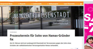 بعد أن وجه مكتب المدعي العام في مدينة أيزنشتات النمساوية اتهامات بـ”الإرهاب”، إلى نجل أحد مؤسسي منظمة حماس بفلسطين ، هذا ما أكده المتحدث باسم المحكمة يوم أمس الخميس في مدينة وجه مكتب المدعي العام في مدينة أيزنشتات النمساوية اتهامات بـ”الإرهاب”، إلى نجل أحد مؤسسي منظمة حماس بفلسطين. وفي المحكمة الإقليمية في أيزنشتات تجري الاستعدادات بالفعل لوضع إجراءات أمنية مشددة …