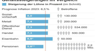 تتجه النمسا لزيادة للأجورمع بداية العام 2023 بنسبة ما بين 7,15 إلى 9,41% وفي المتوسط، تبلغ الزيادة 7.32 في المائة، لموظفين وعمال الدولة، ويرتفع الحد الأدنى للأجور إلى إجمالي 2236 يورو، وسيتم زيادة تعويض المتدربين تدريجيًا على دفعات إلى 1050 يورو شهريًا في السنة الأولى من التدريب المهني بحلول عام 2024 وحسب ما ذكرت الصحف النمساوية، يحصل الموظفون في القطاعات …