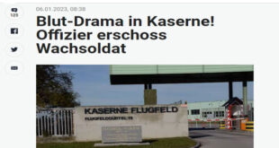 أفادت الصحف النمساوية الصادرة اليوم الجمعة الموافق 6 من يناير 2023 ، أن جنديا لقي حتفه وأصيب قائده بعد تبادل لإطلاق النار في ثكنات قاعدة جوية ببلدة فينر نويشتات النمساوية. وقال متحدث باسم وزارة الدفاع النمساوية، إن جنديا لقي حتفه وأصيب آخر بعد تبادل لإطلاق النار في ثكنات قاعدة جوية ببلدة فينر نويشتات النمساوية اليوم الجمعة. إطلاق نار بعد جدال …