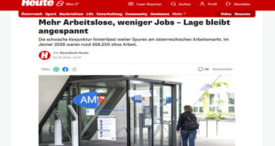 فيينا – شبكة رمضان الإخبارية لا يزال سوق العمل في النمسا يعاني من ضغوط اقتصادية متواصلة، حيث سجّل شهر يناير/كانون الثاني 2026 ارتفاعًا ملحوظًا في أعداد العاطلين عن العمل، في ظل استمرار ضعف النمو الاقتصادي وتراجع فرص التوظيف. وبحسب البيانات الرسمية، بلغ عدد المسجلين كعاطلين عن العمل بنهاية يناير نحو 379,800 شخص، بزيادة قدرها 14 ألف شخص، أي ما يعادل …