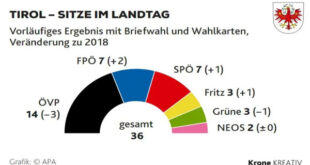 حقق حزب الشعب النمساوي الحاكم ÖVP، انتصارا واضحاً في الانتخابات المحلية لمقاطعة تيرول النمساوية ولكنّه خسر 10 نقاط مئوية عما كانت عليه الانتخابات السابقة للولاية الواقعة جنوب غرب البلاد. وانخفضت شعبية حزب الشعب ÖVP من 44% في الانتخابات السابقة إلى 34% في الانتخابات الحالية، في أخفض نتيجة للحزب في الانتخابات المحلية لتيرول منذ الحرب العالية الثانية. وحل حزب الحرية FPÖ …