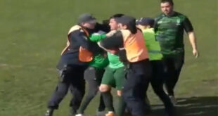 في مشهد نادر وصادم، أقدم لاعب كرة قدم على الاعتداء المبرح على حكم المباراة بشكل مفاجئ، حيث كان الحكم امرأة. وشهدت مباراة جمعت فريقي غارمينسي وديبورتيفو إندبيندينسيا لكرة القدم في مقاطعة تريس أرويوس، في العاصمة الأرجنتينية بوينس آيرس مشهد اعتداء لاعب على الحكمة التي كانت تدير اللقاء. وخلال الشوط الثاني، تهجم كريستيان تيرون، لاعب غارمينسي على الحكمة الأرجنتينية دلما ماغالي …