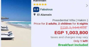 “6 ليالي إقامة في فندق بمليون جنيه.. ليه هو جنة”، حالة من الاندهاش والسخرية فرضت نفسها على رواد السوشيال ميديا، بسبب إعلان جرى تداوله على مواقع التواصل الاجتماعي عن سعر الإقامة 6 ليالي في فيلا بأحد الفنادق بقرية مراسي السياحية بالساحل الشمالي في العلمين، التي تجاوزت المليون جنيه بعد الخصم، ويشمل فردين وطفلين بما الفطار والضريبة. اعتقد البعض أن الأمر مجرد …